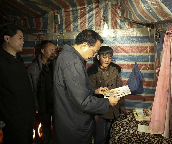 2017年1月23日下午,李克強在云南烏蒙山區(qū)昭通余家大沖自然村13村民小組看望貧困村民。