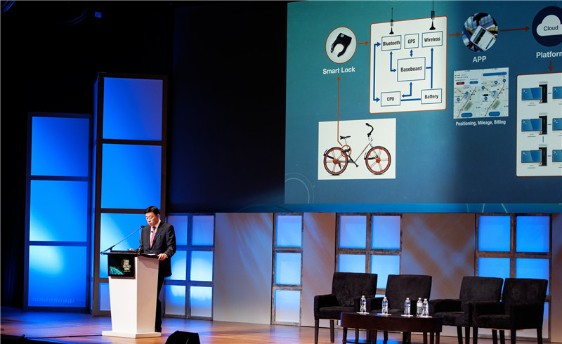 鄧中翰院士在介紹“中國智造” 的共享自行車
