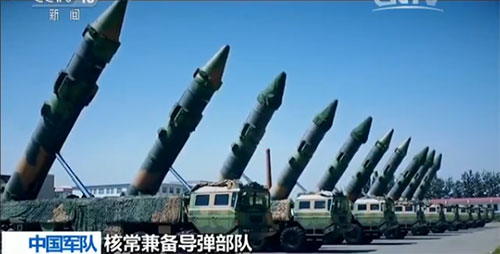 東風浩蕩,雷霆萬鈞。2015年9月3日,在紀念中國人民抗日戰(zhàn)爭暨世界反法西斯戰(zhàn)爭勝利70周年首都閱兵式上,與2009年初次亮相相比,更新型號的信息化、通用型核常兼?zhèn)鋵椃疥狊@艷登場。經(jīng)過多年建設(shè)發(fā)展,火箭軍已經(jīng)成為一支核常兼?zhèn)涞膽?zhàn)略力量。