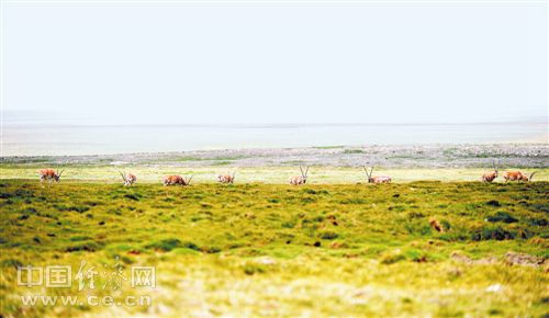 8月7日,青?煽晌骼镒匀槐Wo區(qū)內,一群藏羚羊在悠然吃草。由于近年來對可可西里的保護,這里的藏羚羊由2萬多只恢復到6萬多只。 經(jīng)濟日報記者 高興貴攝