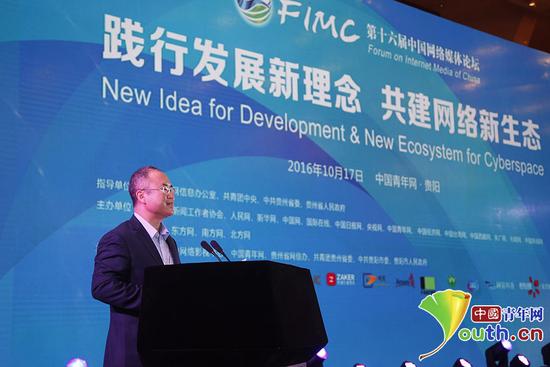 閉幕式上,中國(guó)青年網(wǎng)總裁、總編輯郝向宏宣讀《2016貴陽共識(shí)》。 中國(guó)青年網(wǎng)記者 李拓 攝