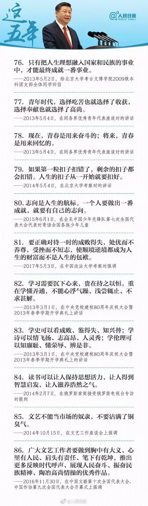 、賵(jiān)持“老虎”、“蒼蠅”一起打;②綠水青山就是金山銀山;③空談?wù)`國(guó),實(shí)干興邦;④人民對(duì)美好生活的向往,就是我們的奮斗目標(biāo);⑤確保部隊(duì)召之即來(lái)、來(lái)之能戰(zhàn)、戰(zhàn)之必勝…習(xí)近平治國(guó)理政100個(gè)金句,一起學(xué)起來(lái)!