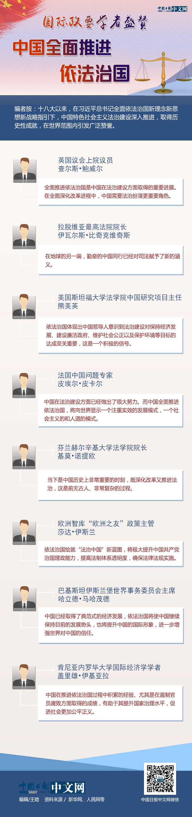 國際政要學(xué)者盛贊中國全面推進依法治國