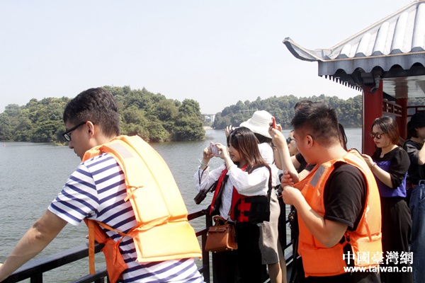 “2017全國重點網媒江西行”的記者一行參訪江西新余市仙女湖。(中國臺灣網 李杰 攝)