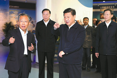 習(xí)近平在江蘇省產(chǎn)業(yè)技術(shù)研究院觀看成果演示,了解江蘇省推動(dòng)科技體制改革和科技創(chuàng)新體系建設(shè)有關(guān)情況。 新華日?qǐng)?bào)記者 于先云攝