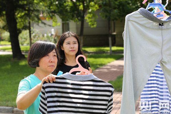 女兒在家時(shí)也會(huì)幫鄭忠燕做一些家務(wù),圖為女兒和鄭忠燕晾曬衣物。唐磊 攝