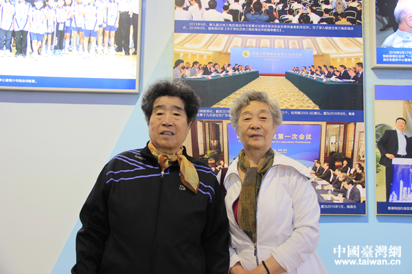 77歲的王毅文(右)感嘆祖國發(fā)展迅速。(中國臺灣網(wǎng) 李寧 攝)