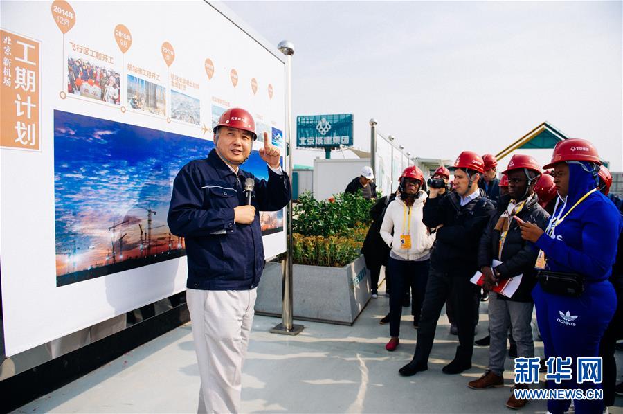 10月16日,外國(guó)記者在北京新機(jī)場(chǎng)建設(shè)工地采訪。當(dāng)日,近40家參加十九大新聞報(bào)道的中外媒體的60多名記者前往北京大興采訪新機(jī)場(chǎng)建設(shè)項(xiàng)目。自10月12日起,十九大新聞中心組織包括北京中軸線、基層黨建、故宮在內(nèi)15條線路的采訪活動(dòng),幫助中外記者更好地了解中國(guó)發(fā)展成就。新華社記者 劉金海 攝