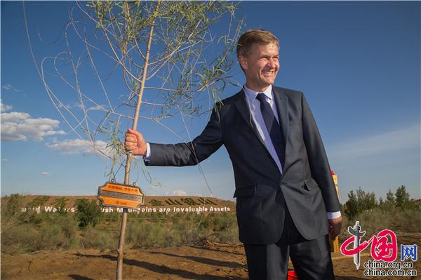 聯(lián)合國副秘書長、聯(lián)合國環(huán)境規(guī)劃署執(zhí)行主任埃里克·索爾海姆考察中國庫布其沙漠。