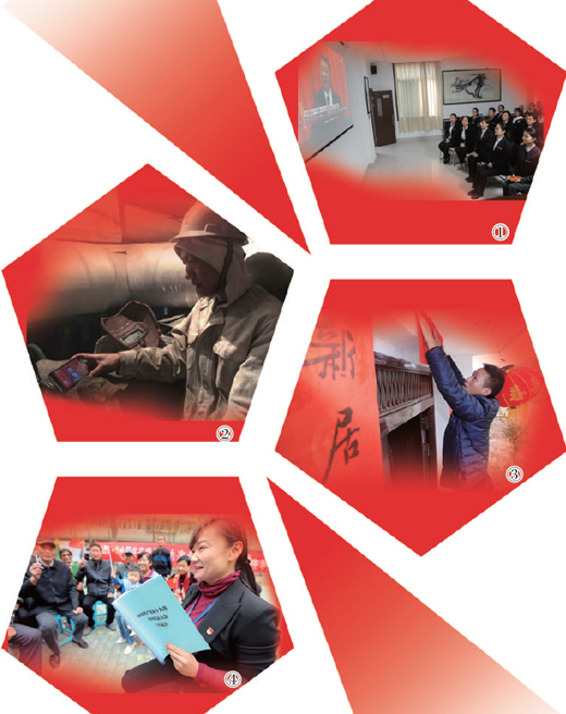 圖④:10月19日,新疆烏魯木齊市堿泉東社區(qū)黨支部書記賈貴茵向黨員和群眾傳達學(xué)習(xí)十九大報告。