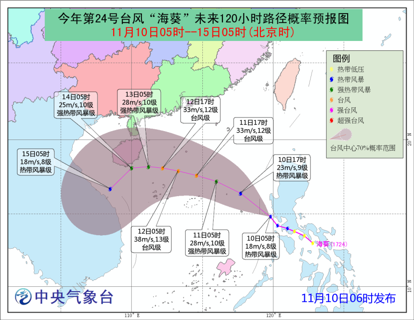 臺(tái)風(fēng)路徑預(yù)報(bào)圖(11月10日05時(shí)-15日05時(shí))