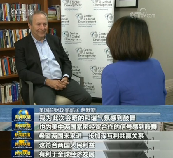 美國前財長勞倫斯·薩默斯等表示,兩國元首會晤創(chuàng)造了和諧氛圍,美中之間互利共贏的關系有利于全球經(jīng)濟發(fā)展。