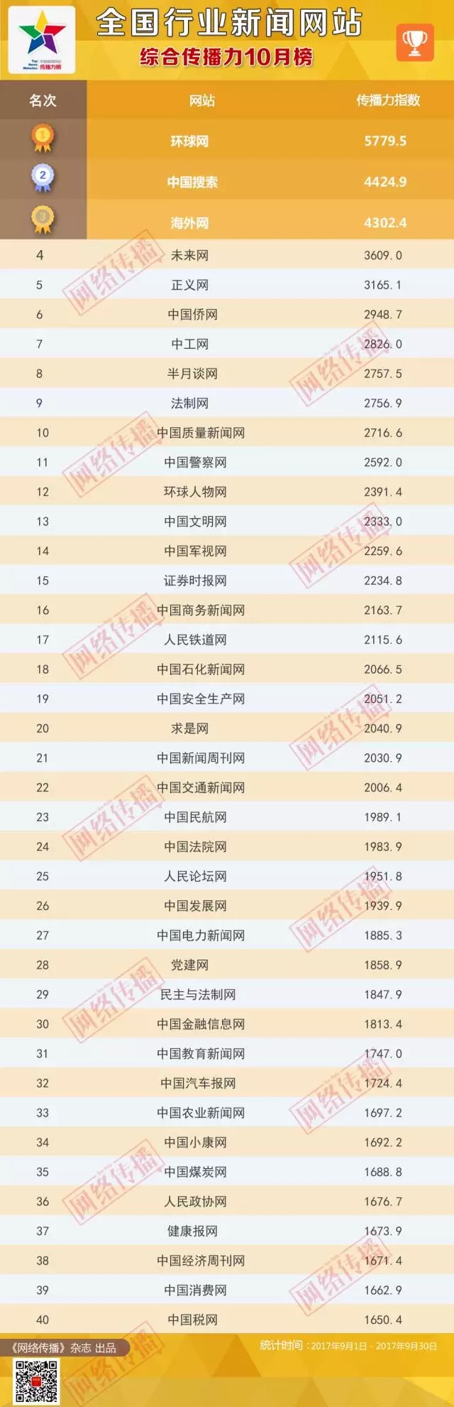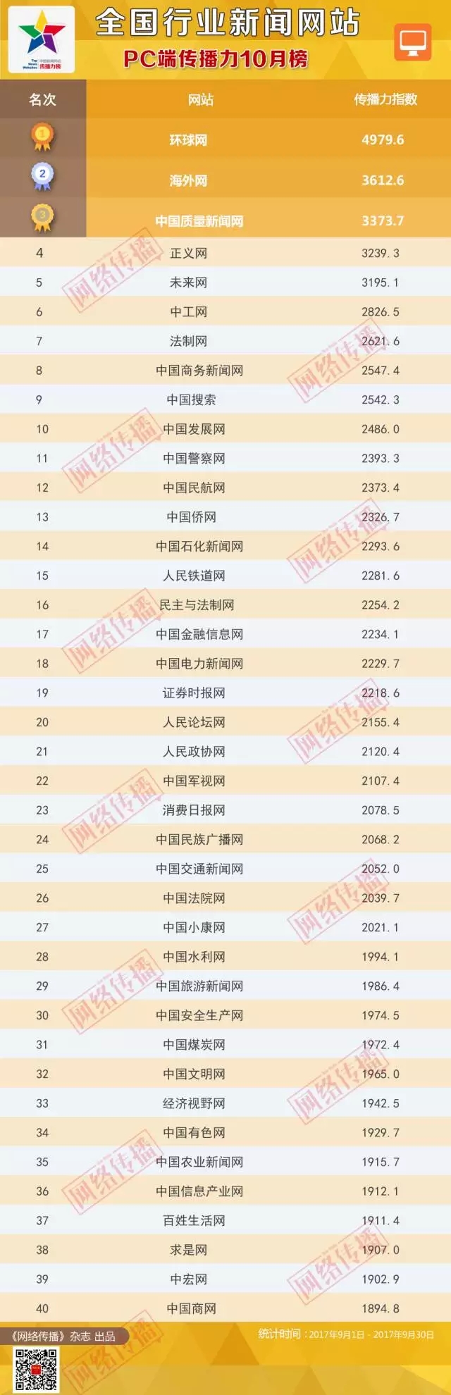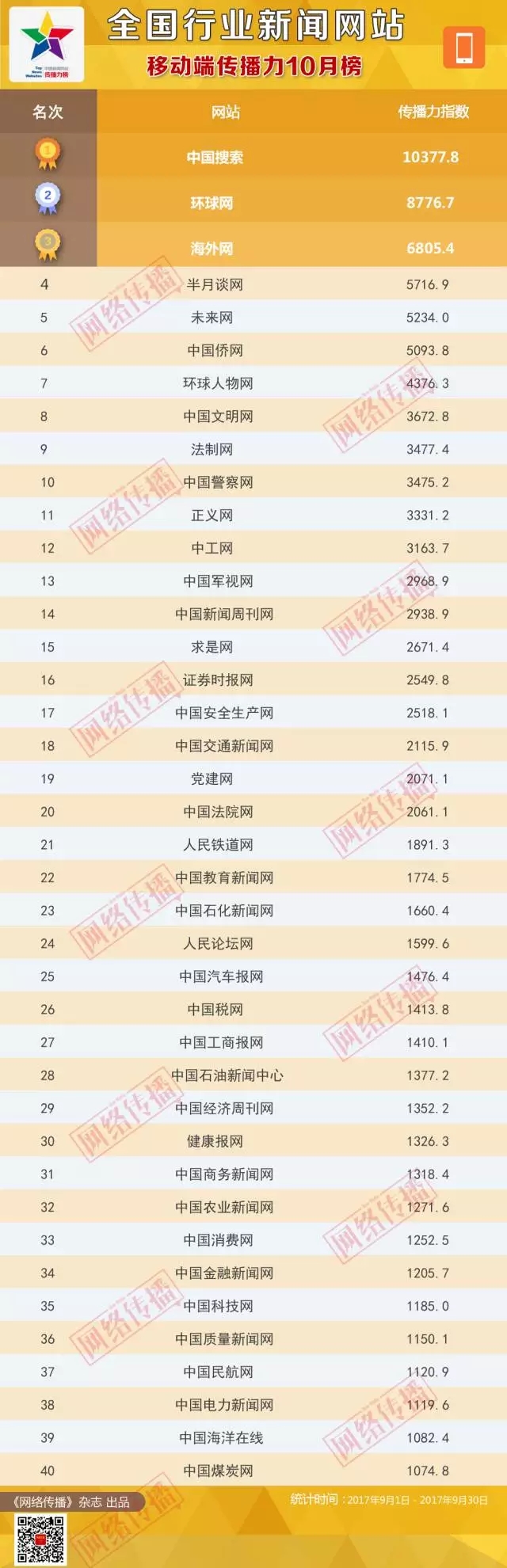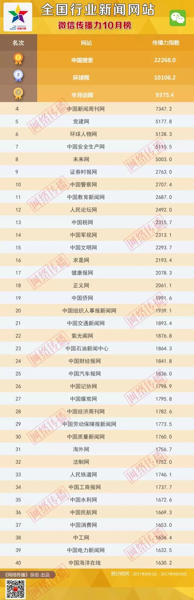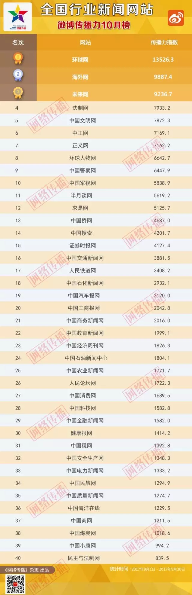 全國(guó)行業(yè)新聞網(wǎng)站傳播力2017年10月榜