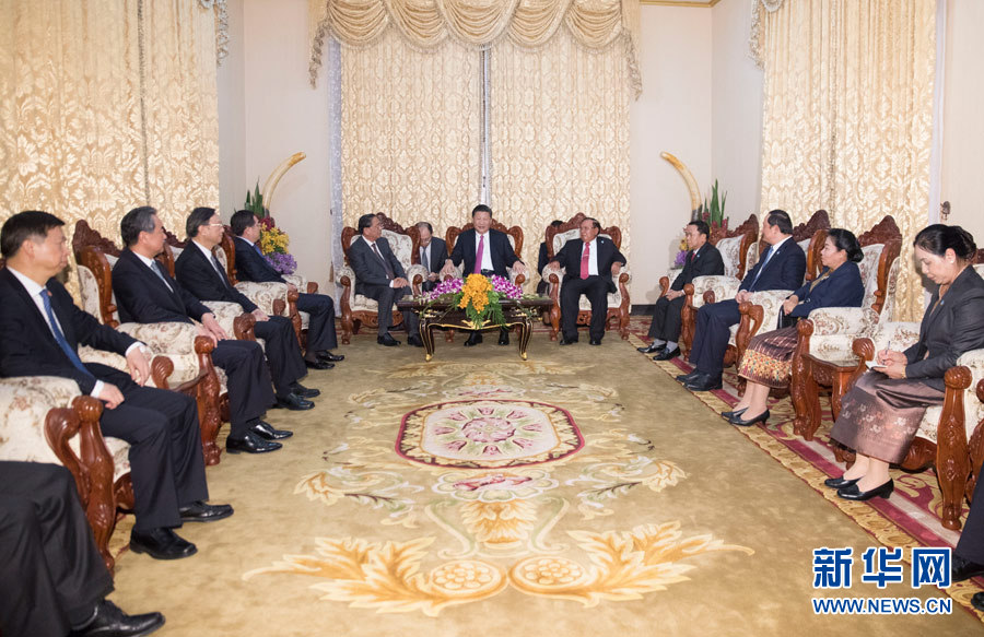 11月13日,中共中央總書記、國家主席習(xí)近平在萬象會見老撾人民革命黨中央委員會前總書記、前國家主席朱馬里。老撾人民革命黨中央委員會總書記、國家主席本揚等參加會見。新華社記者 丁林 攝