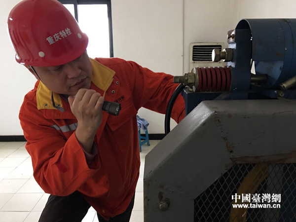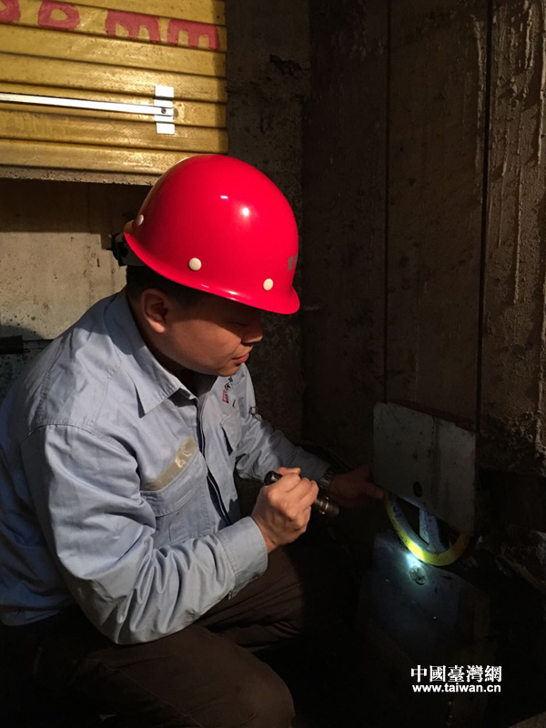 張東平在進(jìn)行電梯故障檢測與維修。(重慶市特種設(shè)備檢測研究院供圖 中國臺灣網(wǎng)發(fā))