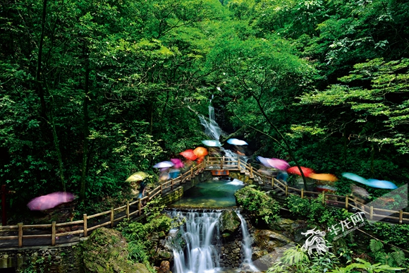黑山谷景區(qū)云霧多,日照少,雨量充沛,平原部分屬亞熱帶濕潤(rùn)季風(fēng)氣候。景區(qū)森林覆蓋率高達(dá)97%,負(fù)氧離子達(dá)100000個(gè)∕立方厘米以上,堪稱(chēng)“天然氧吧”。在夏季,景區(qū)平均氣溫26℃,是市民常去的周邊避暑勝地之一。