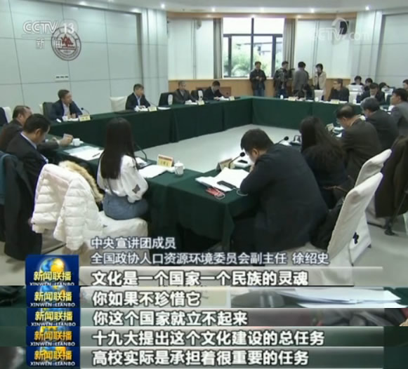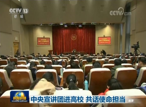 央視網(wǎng)消息(新聞聯(lián)播):連日來,學(xué)習(xí)貫徹黨的十九大精神中央宣講團(tuán)走進(jìn)高校,通過透徹深入的宣講、貼近實(shí)際的解讀,讓黨的十九大精神落地生根。