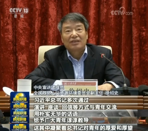 21日,中央宣講團(tuán)成員、全國(guó)政協(xié)人口資源環(huán)境委員會(huì)副主任徐紹史來到山東大學(xué)作宣講。