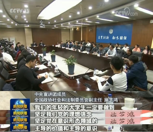 在吉林大學(xué),中央宣講團(tuán)成員、全國(guó)政協(xié)社會(huì)和法制委員會(huì)副主任施芝鴻理論聯(lián)系實(shí)際為師生們宣講。