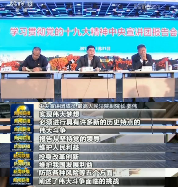 在武漢大學(xué),中央宣講團(tuán)成員、最高人民法院副院長(zhǎng)姜偉圍繞黨的十九大的主要成果等主題,為師生代表宣講。