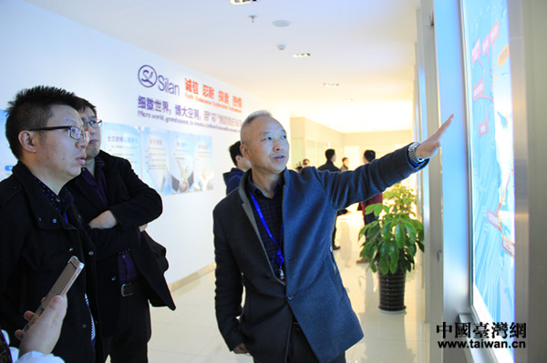 成都士蘭半導體制造有限公司負責人向記者介紹公司發(fā)展情況。(中國臺灣網(wǎng) 李寧 攝)
