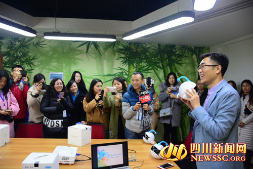 四川新聞網(wǎng)南充12月11日訊(記者周鴻攝影報(bào)道)“我們一起出去玩吧!”“好。 苯裉焐衔,在南充高新孵化園里,“聚焦‘155’戰(zhàn)略見證大城崛起”2017年全國網(wǎng)絡(luò)媒體采訪團(tuán)對(duì)這個(gè)可與人類對(duì)話的圓形機(jī)器人十分感興趣!疤蓯哿恕!