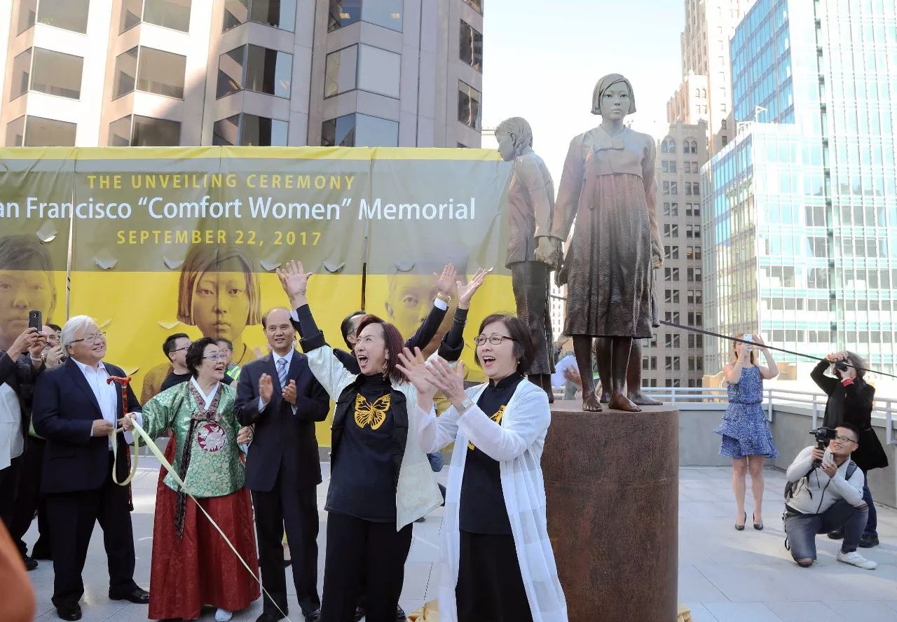 2017年9月22日,韓國、中國、菲律賓“慰安婦”受害者群雕在舊金山圣瑪麗廣場落成,警醒世人牢記日本侵略者帶來的災(zāi)難,珍惜和平生活。然而就是這樣的一座象征著珍惜和平的群雕,卻在日美之間,掀起了不小的外交風(fēng)波。