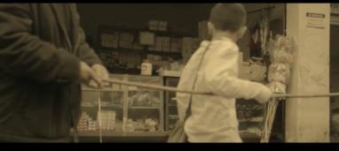 失落至極的趙亮無(wú)助坐在街邊吃面包,看到路邊有人擦鞋,便又想起自己和眼盲的爺爺擦鞋賺錢相依為命的日子。