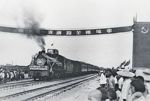 1952年7月1日,成渝鐵路全線通車,成都駛往重慶的第一列火車出站。(圖片來自中國共產(chǎn)黨新聞網(wǎng))