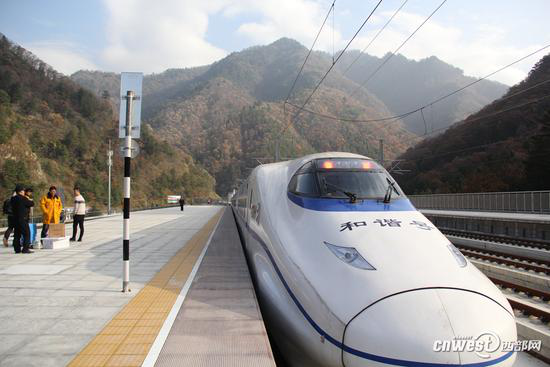 穿梭于秦嶺山間的西成高鐵。(圖片來自西部網(wǎng))