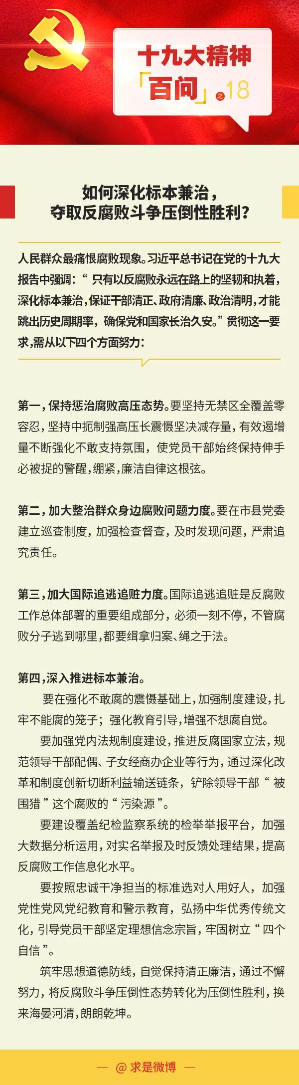 【十九大精神百問】如何深化標本兼治,奪取反腐敗斗爭壓倒性勝利?