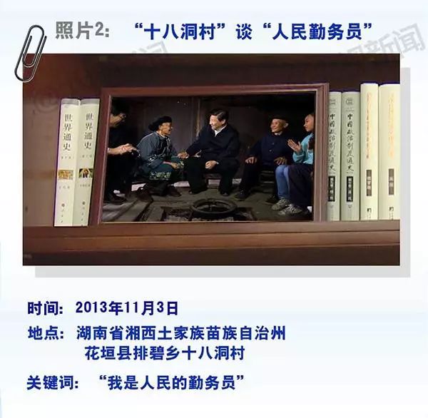 2013年11月3日,習(xí)近平在湖南湘西土家族苗族自治州花垣縣排碧鄉(xiāng)十八洞村考察。習(xí)近平來(lái)到苗族村民施齊文家中。不識(shí)字也不會(huì)說(shuō)“官話”的苗族大媽石爬專問(wèn)習(xí)近平:“怎么稱呼您?”習(xí)近平自我介紹:“我是人民的勤務(wù)員。”一問(wèn)一答之間,盡顯人民情懷、公仆之心。