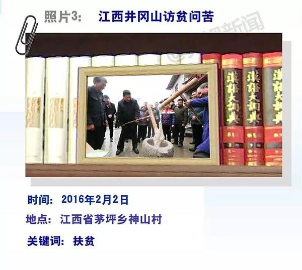2016年2月2日,習(xí)近平來(lái)到江西茅坪鄉(xiāng)神山村,同村民一起打糍粑,并向全國(guó)各族人民致以新春祝福。在這里,習(xí)近平對(duì)鄉(xiāng)親們說(shuō):“在扶貧的路上,不能落下一個(gè)貧困家庭,丟下一個(gè)貧困群眾!