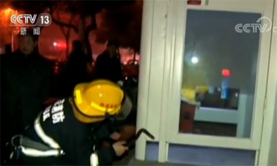 消防隊(duì)員十分鐘就趕到了現(xiàn)場(chǎng),用撬棍撬開(kāi)了門(mén)鎖。