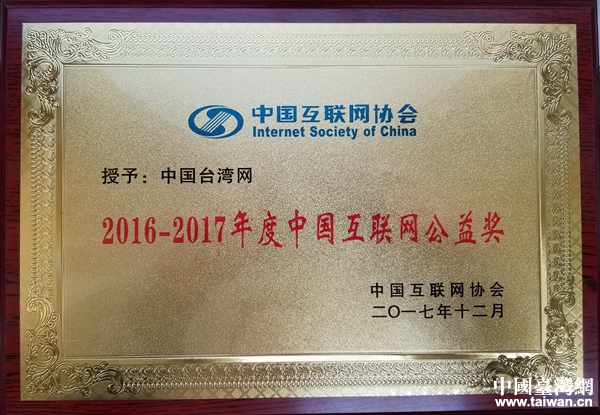 中國臺(tái)灣網(wǎng)獲頒“2016-2017年度中國互聯(lián)網(wǎng)公益獎(jiǎng)”