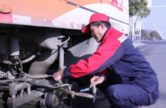 1月8日清晨,在江蘇南通通州區(qū)城東新區(qū)湘江北路上,通州區(qū)城管局環(huán)衛(wèi)處城東新區(qū)環(huán)衛(wèi)所職工葛新林彎著腰,全神貫注地用細(xì)鋼絲疏通機(jī)械清掃車底盤的灑水管口。為了把路面掃干凈,他每天凌晨4點多鐘開著機(jī)掃車,對街路大面積進(jìn)行機(jī)械普掃,然后進(jìn)行巡回灑水和保潔。近日,作為一名優(yōu)秀一線工作者,葛新林被中國城市環(huán)境衛(wèi)生協(xié)會表彰為“全國最美環(huán)衛(wèi)人”。