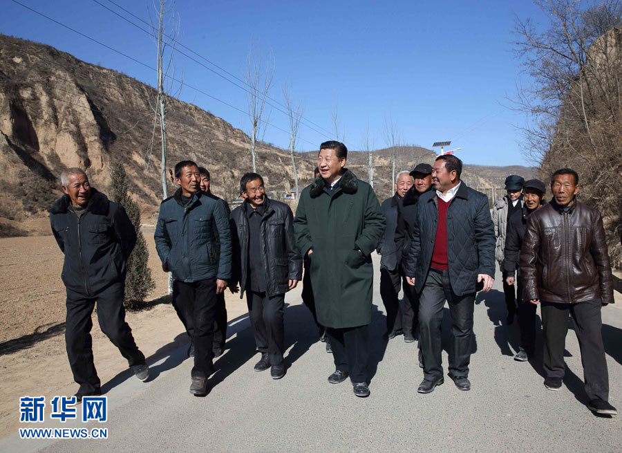 在河北阜平龍泉關(guān)鎮(zhèn)駱駝灣村困難戶唐榮斌家,習(xí)近平拿起桌上的藥瓶仔細(xì)查看,囑咐老人多多保重身體。