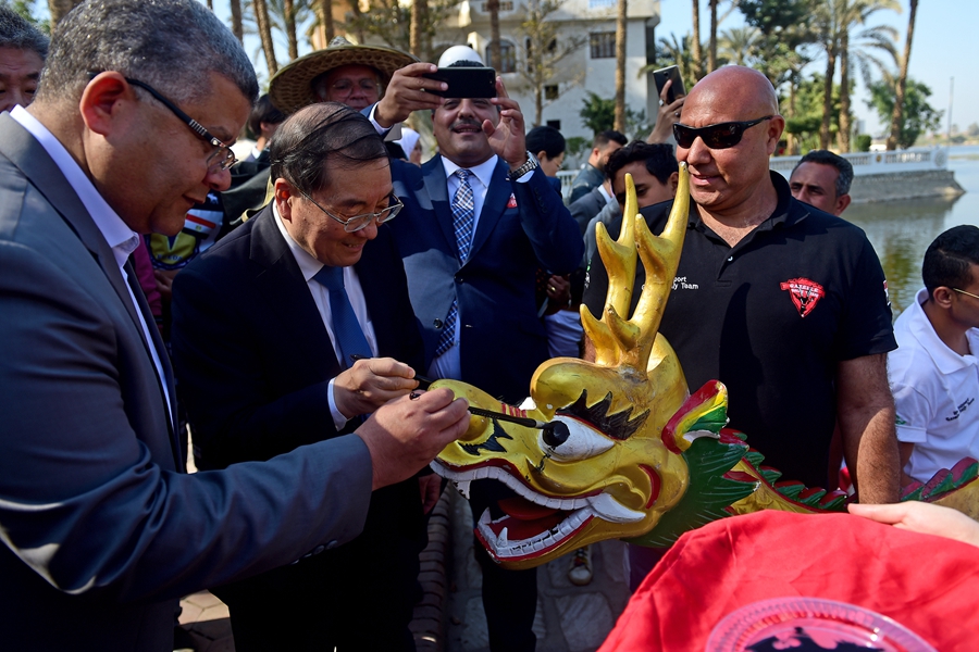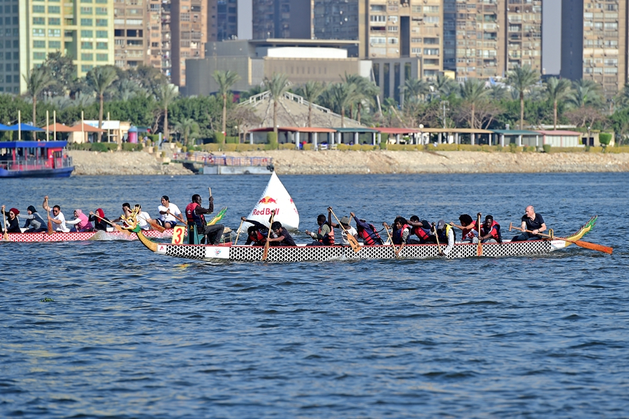 “歡樂春節(jié)”尼羅河龍舟大賽在埃及開羅尼羅河畔舉行。(圖片來源:新華社)