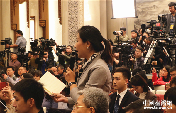 3月2日下午,全國政協(xié)十三屆一次會議新聞發(fā)布會在人民大會堂一層新聞發(fā)布廳舉行。圖為媒體記者提問。(中國臺灣網(wǎng) 吳曉寒 攝)