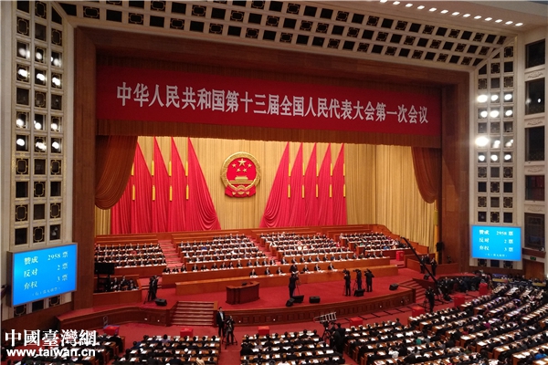 十三屆全國人大一次會議第三次全體會議11日下午經(jīng)投票表決,通過了《中華人民共和國憲法修正案》。(中國臺灣網(wǎng) 何建峰 攝)