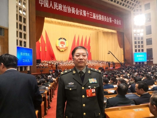 軍隊政協(xié)委員、國防大學軍民融合發(fā)展研究中心教授姜魯鳴在中國人民政治協(xié)商會議第十三屆全國委員會第一次會議現(xiàn)場