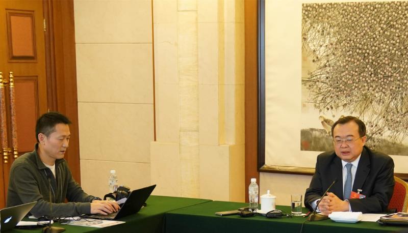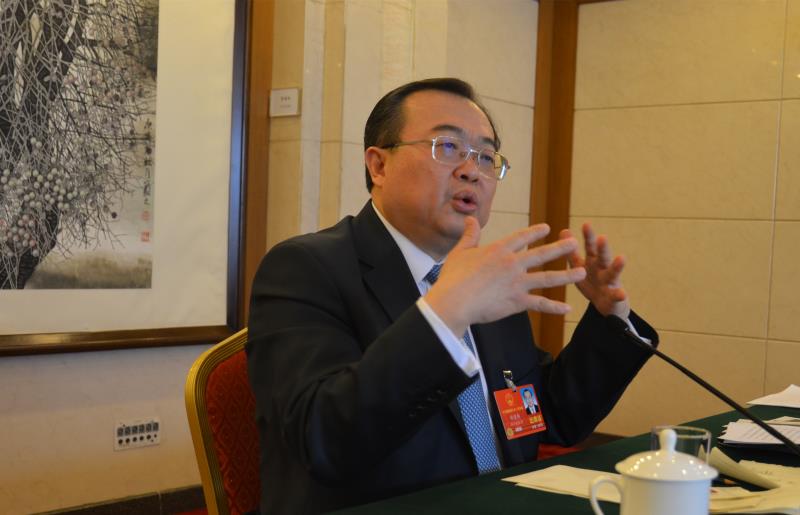 劉建超代表在回答《法律與生活》記者的提問(wèn)/中新社記者毛建軍 攝