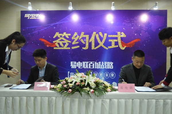 圖為易電聯(lián)和代理商合作簽約現(xiàn)場。
