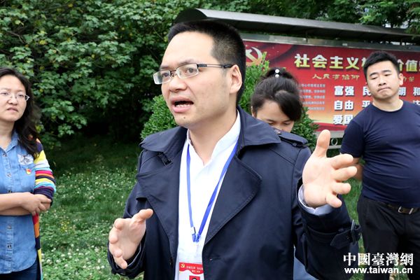 漢旺鎮(zhèn)黨委副書記王強接受記者采訪。(中國臺灣網(wǎng) 尹賽楠 攝)
