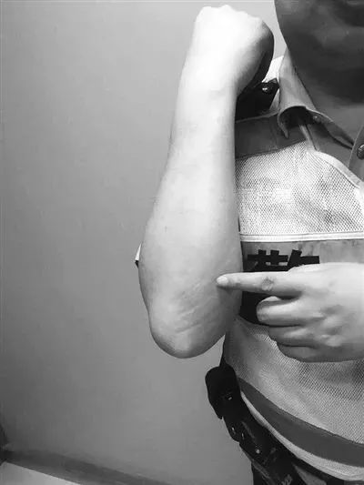 記者見到程永躍時,他手臂上還留有一道七八厘米長的印跡。說起擋刀一事,他憨憨地笑了。