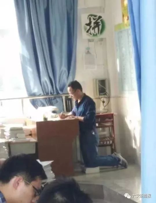 近日,這樣一張照片刷爆朋友圈:一位教師跪在墊子上批改試卷,腰板挺直,神情專注。