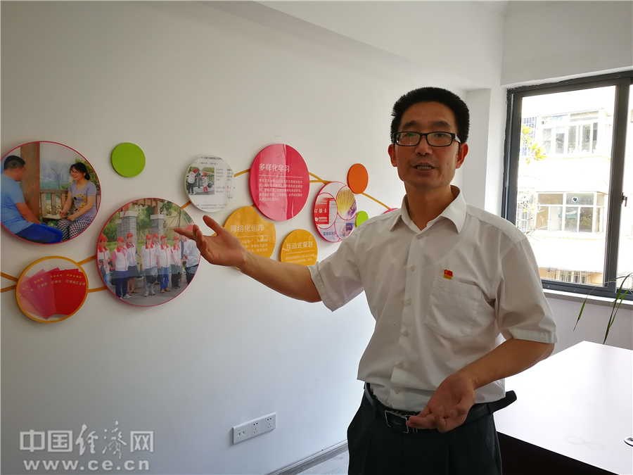 陳軍浩向記者介紹”紅領(lǐng)之家”發(fā)展歷程。經(jīng)濟(jì)日?qǐng)?bào)-中國(guó)經(jīng)濟(jì)網(wǎng)記者 宋雅靜攝