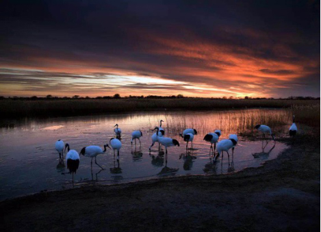 吉林向海國家級自然保護區(qū)總面積1054.67平方公里,這里是沼澤分布最廣,最集中的地區(qū)之一,是重要的候鳥繁殖和遷徙途中的補給站。鳥類293種,其中包括了6種鶴類,和10種國家一級保護動物。在世界上僅有的近2000只丹頂鶴中,最多時有200多只在這里繁衍生息。