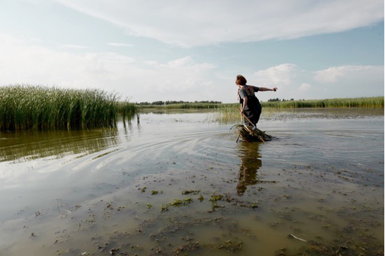 王春麗在向海濕地清理漁網(wǎng)