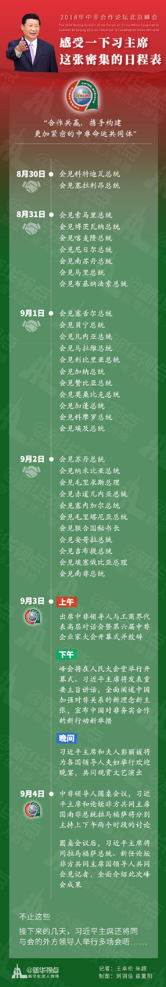 3日,中非合作論壇北京峰會將開幕,峰會還沒開始的前4天,習近平主席進行的會晤已經多達31場。日程到底有多密集?看圖感受一下